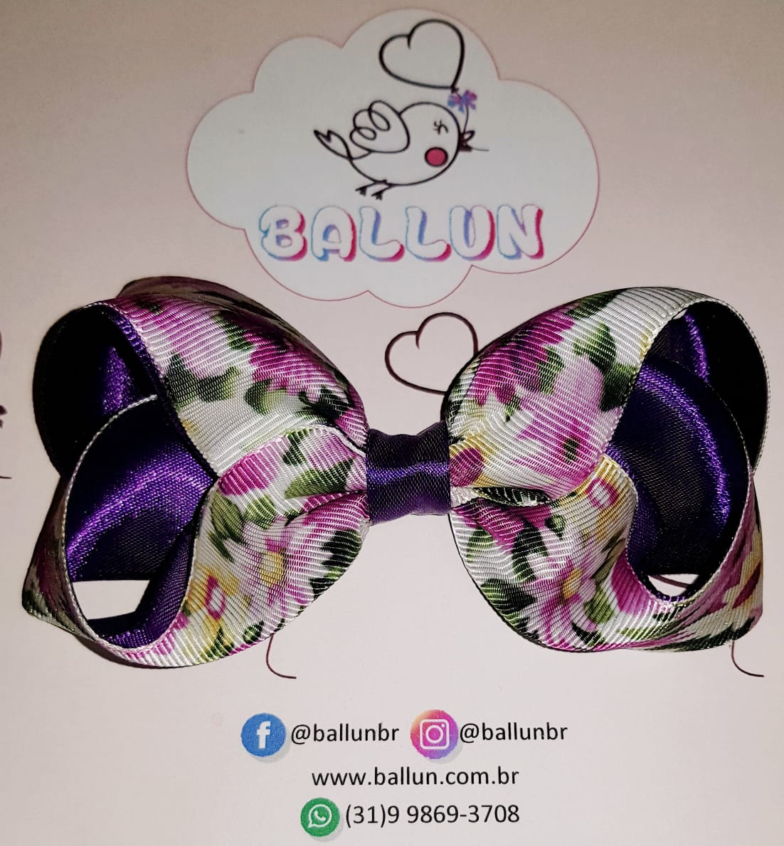 Laço duplo feito em gorgorão com estampa floral e fundo em cetim.
