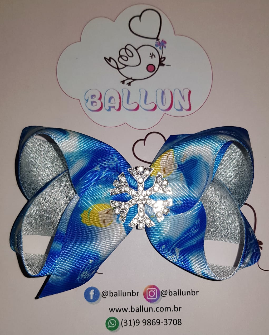 Laço feito em gorgorão com aplique de floco de neve com strass.