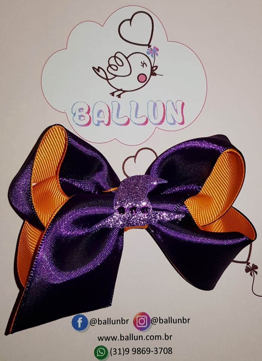 Laço de Halloween feito em fita importada de cetim liso e fundo em gorgorão liso.