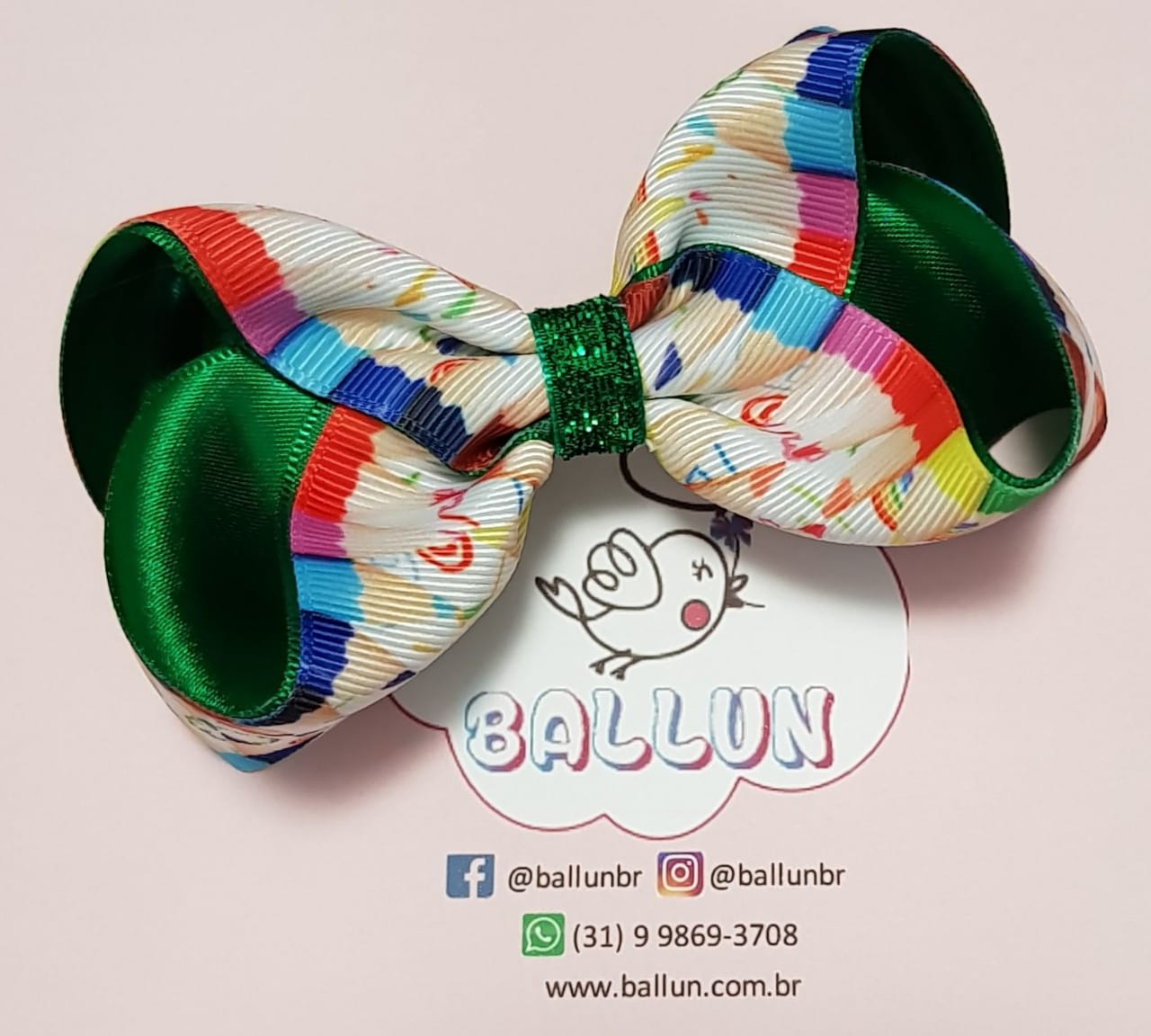 Laço feito em gorgorão importado e cetim com miolo em fita de glitter.