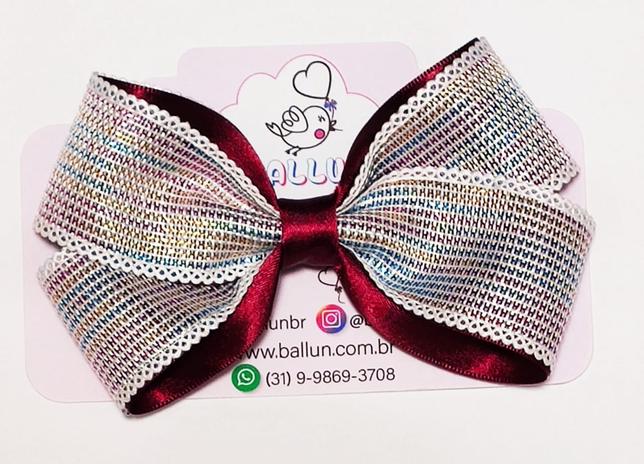 Laço feito em fita de juta e fita de cetim.