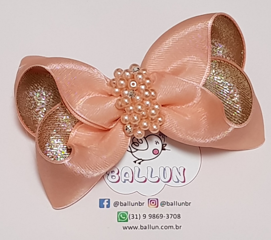 Laço feito em três fitas com acabamento final em organza e miolo bordado em pérola e strass.